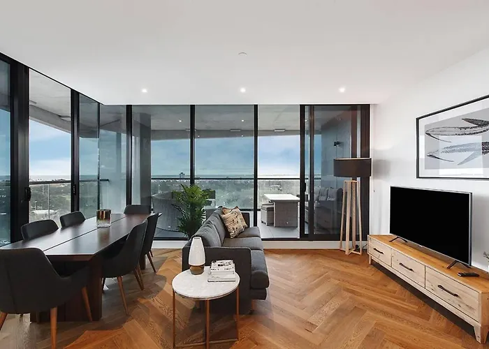 Spacieux| Appartement Top Of Town - Penthouse With Every Opulence à Ville de Ville de Melbourne est situé dans le quartier "Albert Park" à Ville de Melbourne à moins de 3 km d'Aquarium de Melbourne, fortement recommandé pour une visite en famille. Le domicile de 106 m^2 propose des équipements modernes, tels qu'un Wi-Fi et des éléments essentiels comme un parking privé gratuit pour les voyageurs en voiture.